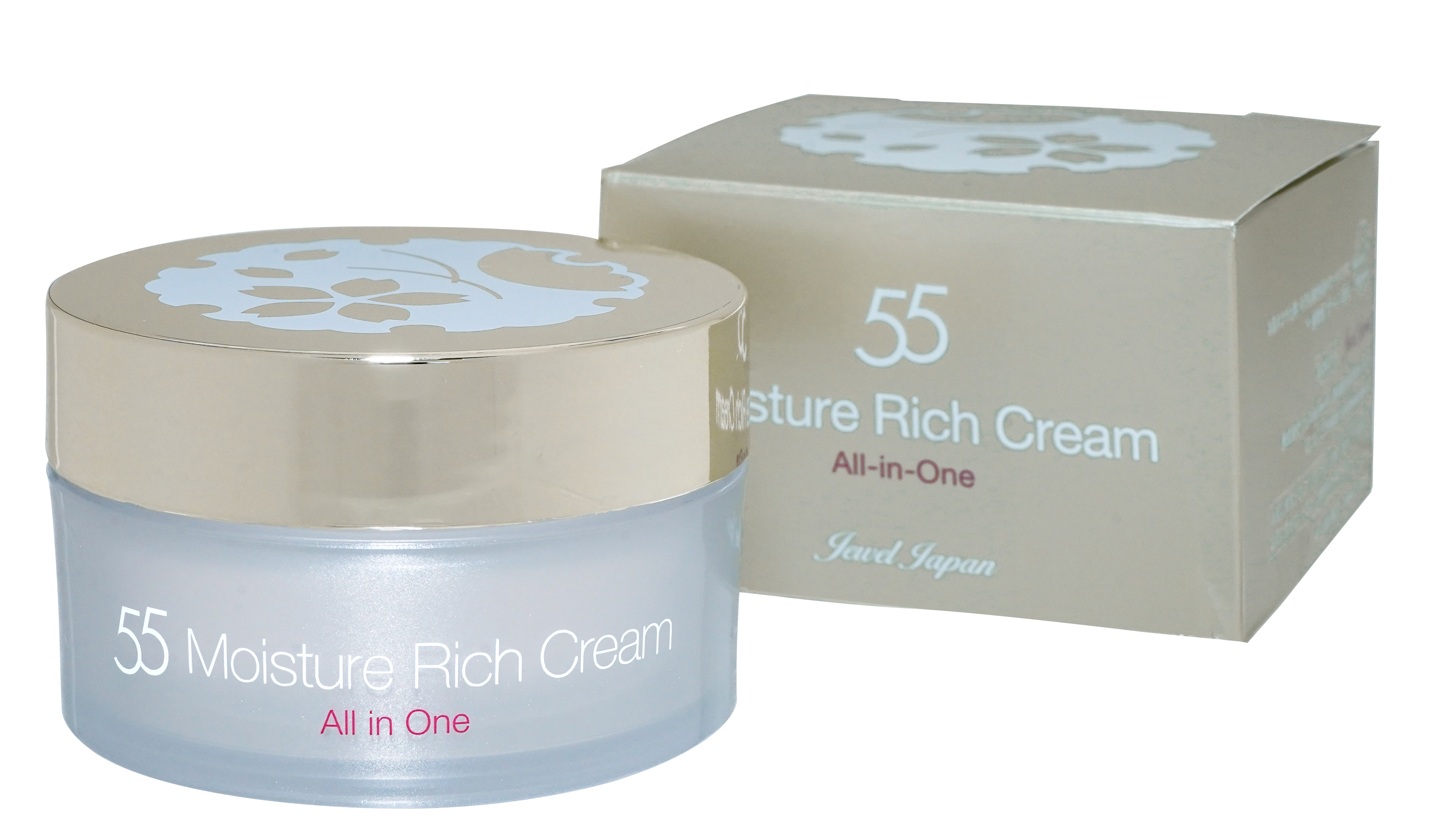 55 モイスチャーリッチクリームは、発売から10年のロングセラーとなった55クリームにナイアシンアミド、ハトムギエキス、カンゾウエキスを加え、進化したオールインワンの保湿クリームです。フラーレンをはじめ、高濃度の保湿成分が配合されており、肌にたっぷりの水分を与え、しっかりと保護するることで、ふっくらとした弾力のある肌を実現します。